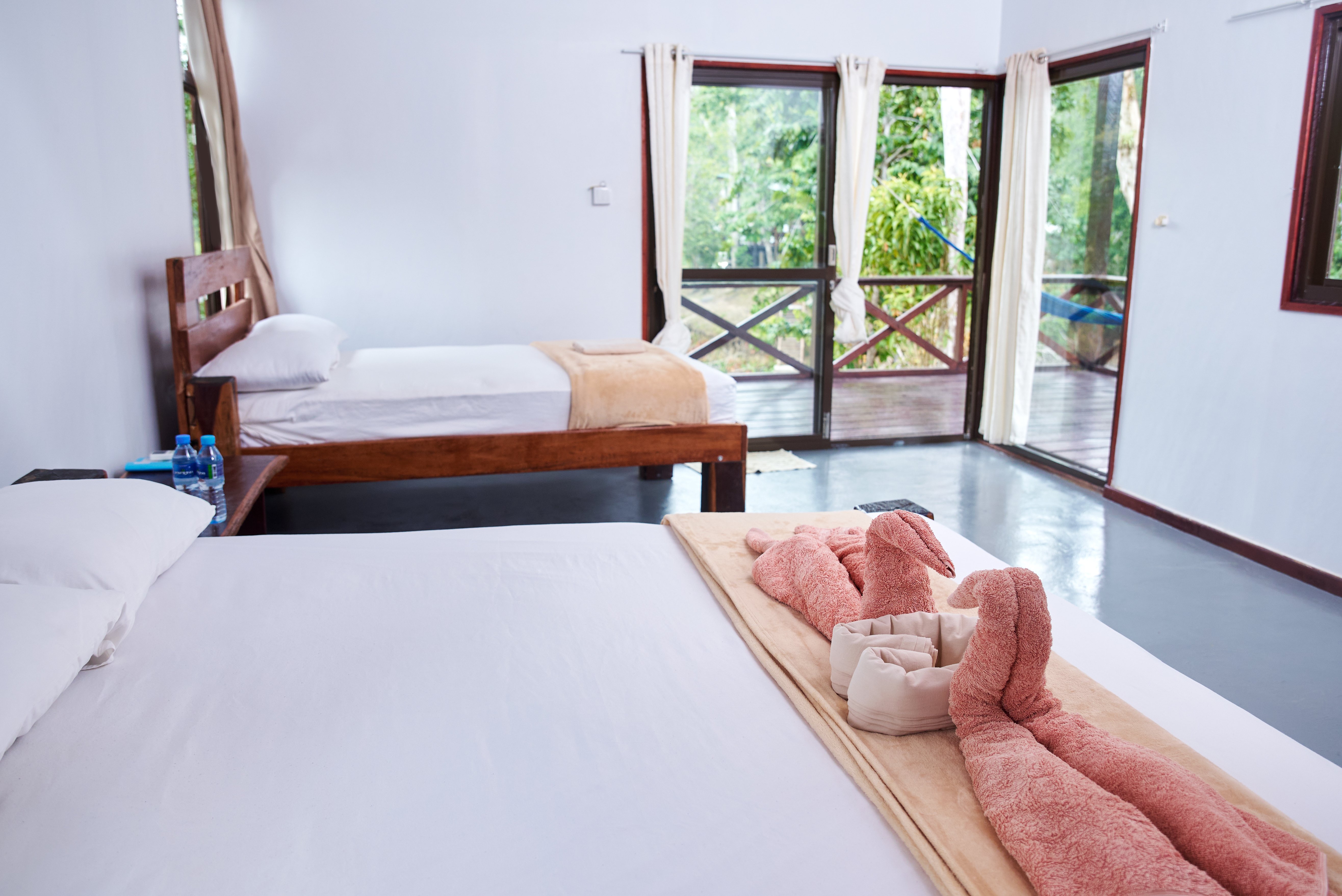Voorbeeld van een gedeelde lodge op het eiland. De exacte kamerindeling kan verschillen (de sfeer en rust blijven hetzelfde).
